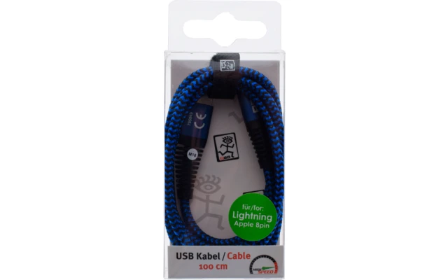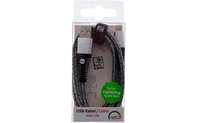 USB-Datenkabel mit stabilem Metallstecker. Passend für alle Geräte mit Apple 8 pin-Anschluss.