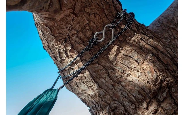Eine extra große und besonders leichte Hängematte mit integriertem Seil und Haken, zur Anbringung werden keine weitere Haken oder Seile benötigt. Überaus stabiles, atmungsaktives und hautfreundliches Material.