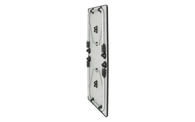 Die Tischplatte aus MDF ist strapazierfähig und bietet eine großzügige Fläche von 115 × 70 cm für gemeinsame Mahlzeiten oder Spielabende. Das Aluminiumgestell mit einem Durchmesser von 25 mm ist leicht, aber dennoch robust genug, um Belastungen von bis zu 30 kg standzuhalten. Der Tisch hat ein Gesamtgewicht von 9,6 kg und kann durch die Halterungen auf der Unterseite des Tisches einfach und bequem zusammenklappt und verstaut werden. Das Packmaß beträgt 115 × 70 x 5 cm.