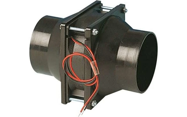 Sehr leiser und langlebiger Rohrlüfter mit beidseitigem Schlauchanschluss.