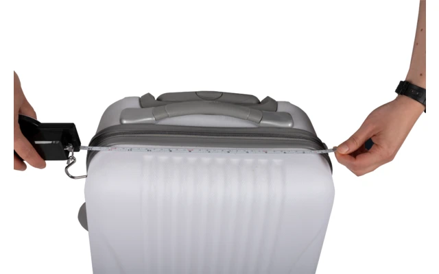 Die Dunlop Gepäckwaage kann max. 32 kg tragen und verfügt über ein integriertes Maßband.
