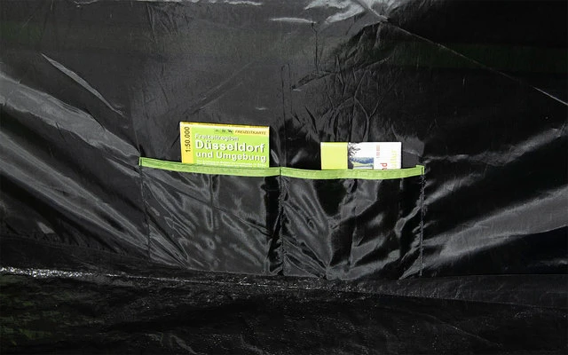 Extra starke Reißverschlüsse mit Reißverschluss Abdeckung. Die sehr stabilen 5mm Stahl- Erdnägel verbiegen sich auch bei hartem Untergrund nicht. Die Nähte sind mittels Nahtbandes wasserdicht versiegelt und gewähren eine bessere Naht- Reißfestigkeit. Kabeleingang mittels Reißverschlusses und Kabelführung für Beleuchtung. Abgedunkeltes Innenzelt mit Vario Vent Control System. 2 Moskitonetz- Eingänge halten lästige Plagegeister fern und kann bequem von innen je nach Klima variabel bedient werden. Mit einer Reißschluss- Trennwand lässt sich das Innenzelt in eine große Kabine oder 2 Schlafbereiche aufteilten. 4 Praktische Organizer und 4 Innenzelttaschen für Utensilien. 2 Lampenhalter für Campingleuchten runden den Komfort ab. Das Garda 4.0 bietet für 4 Personen mit Camping Ausrüstung ausreichend Platz. Bestens geeignet für den Camping Urlaub.