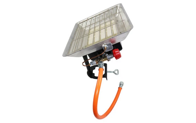 Der Heizstrahler zur Direktmontage an 5 und 11 kg Propangasflaschen, mit thermoelektrischer Zündsicherung