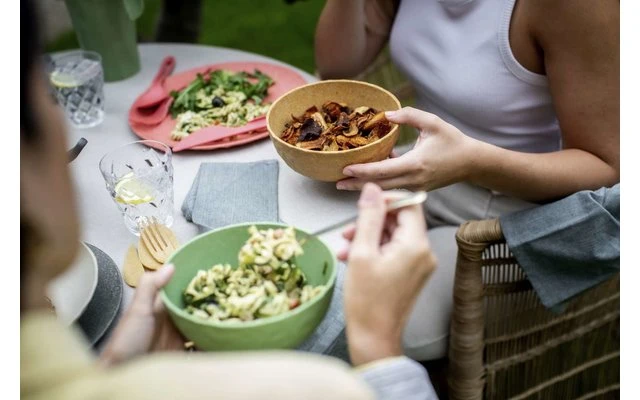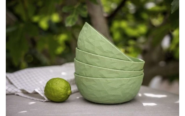 Das Geschirrset ist aus umweltfreundlichem thermoplastischem Kunststoff hergestellt und bringt frischen Wind in jeden Outdoor-Lunch oder Terrassen-Dinner und hält auch turbulenten Feiern ohne jeden Scherbenhaufen stand. Die solide Materialität und die modernen Farben vermitteln stets das gute Gefühl eines schön gedeckten Tisches. Das Material bleibt lange schön und ist natürlich spülmaschinenfest. Ideal für alle Outdoor-Aktivitäten, bei denen man auf stilvolles Geschirr keineswegs verzichten möchte. Abgerundet wird das 16-teilige Set durch vier formschöner Trinkbecher, Wasser, Longdrinks, Säfte oder Limonade – dieser Becher kann wirklich alles! Damit wird er in- und außerhalb des Hauses ganz schnell zum Vierjahreszeiten-Universaltalent, das zudem mit seiner faszinierenden Facettenstruktur viel Leben auf Tisch und Tafel bringt. Seine organische Haptik der Außenseite lässt sich auch von Kinderhänden sicher greifen – und sollte er doch einmal herunterfallen, bleibt er ganz! Da man unter diesen Voraussetzungen eigentlich nie genug Exemplare von CLUB L haben kann, macht sich das Glas im Küchenschrank durch ideale Stapelbarkeit ganz besonders schlank.