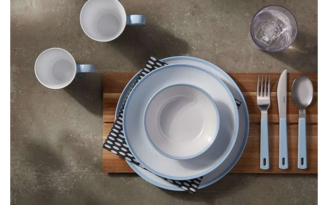 Damit kann das Geschirr platzsparend verstaut werden und eignet sich ideal für das Camping, den Caravan- oder Bootsurlaub. Das Campinggeschirr Flow ist in verschiedenen Farben und Dekoren erhältlich und besteht aus verschiedenen Tellern, Schalen, Bechern und Trinkgläsern. Für unbegrenzte Kombinationsmöglichkeiten!