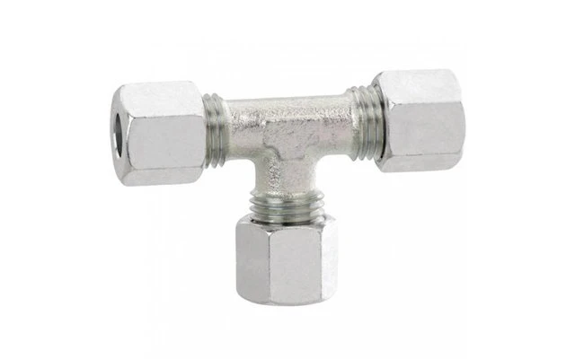 Schneidring-Verschraubungen nach DIN. Aus Temperguss, galvanisch verzinkt. Zum Verbinden und Abzweigen von Gasleitungsrohren.