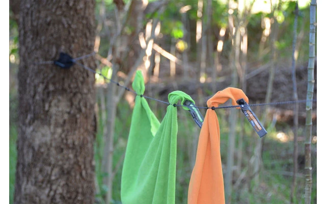 So klein und kompakt, ist dies die perfekte Wäscheleine, die du auf allen deinen Reisen mitnehmen kannst. Unsere Wäscheleine verwendet zwei parallele Schnüre mit verschiebbaren Perlen, die an den Schnüren entlang gleiten. Hänge die Wäscheleine auf, indem du die Enden um einen Aufhängepunkt wickelst und dann einhakst. Nasse Wäsche wird zwischen den beiden Schnüren durch Zusammenschieben der Perlen gesichert.