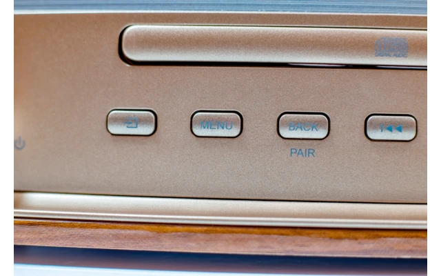 Persönliche Klangeinstellungen, Wiederholfunktion, Zufallswiedergabe, Uhrzeit mit 2 Weckzeiten und Einschlaffunktion, Aux-In, Kopfhörerbuchse, Fernbedienung, Eingebaute Stereo Lautsprecher, Ausgangsleistung 2 x 15 Watt RMS, Netzadapter beiliegend.