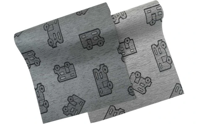 Moderner Läufer für den Innenbereich im Camping-Design. Kann mittels Schere individuell zugeschnitten werden. Der Teppich ist waschbar bei 30° C.