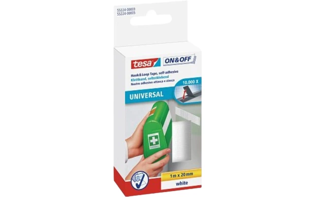 Das tesa On & Off Klettklebeband zum Aufkleben kombiniert die überlegene tesa-Klebetechnologie mit einem innovativen Klett-System und sorgt dadurch für einen sicheren Halt. Es lässt sich kinderleicht auf die benötigten Maße zuschneiden und vielseitig einsetzen. Im Haushalt, im Büro oder im Hobbykeller eignet sich das Klettklebeband zum Organisieren und Fixieren von leichten Gegenständen und Textilien.