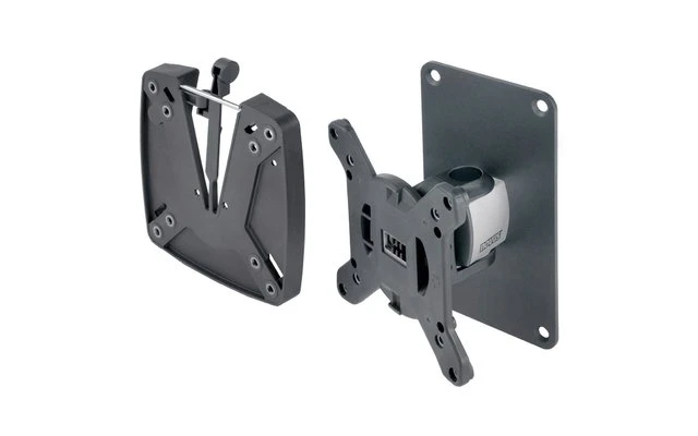 Kompakter TFT-Halter mit Kreuzgelenk und Quick-Release Taste. Schwenk- und neigbar zur Einstellung der bestmöglichsten Monitorposition.
